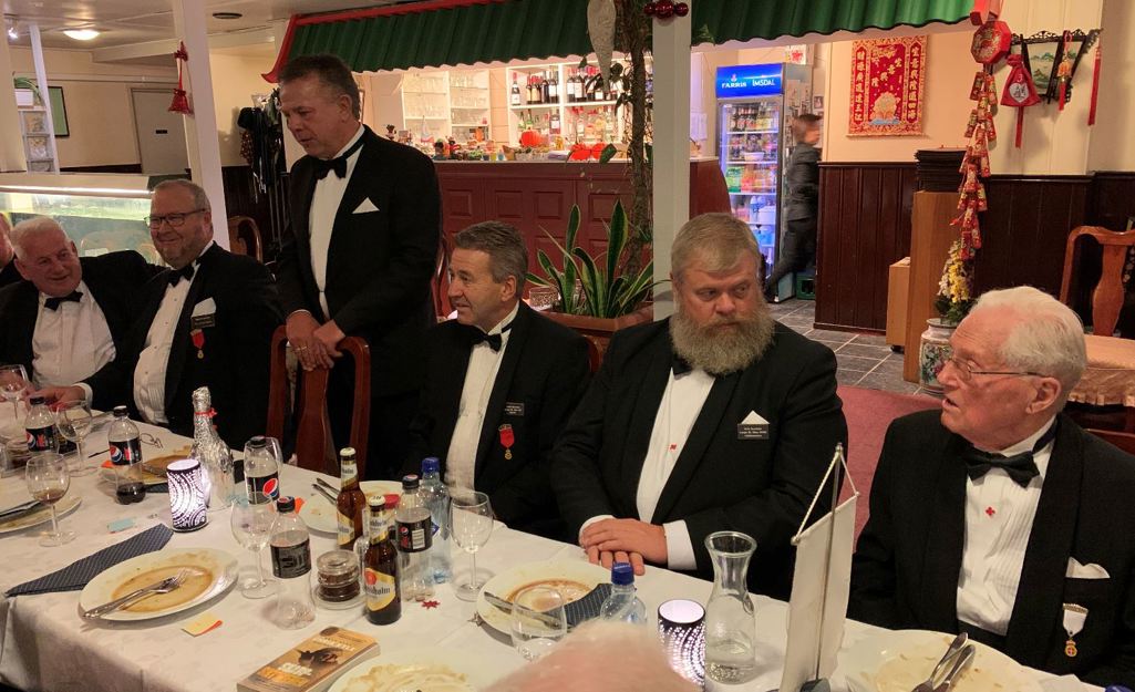 Fra venstre: Drott Losje XVIII Lillehammer Erik Nordahl, Drott og 25 års jubilant Cato Dybdahl Losje XV Gjøvik, 25 års jubilant og Gode Ordensbroder André H. Hansen Losje XXVI Eidsvoll, Drott Losje XXVI Eidsvoll Tor-Arne Aarhus, og fra RHK's Rikslosje Aktverdige Vikarierende Storkommandør Bjørn O. Ramton.